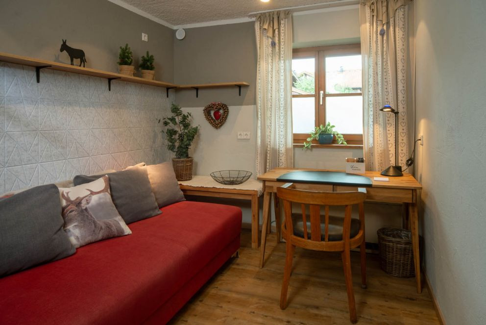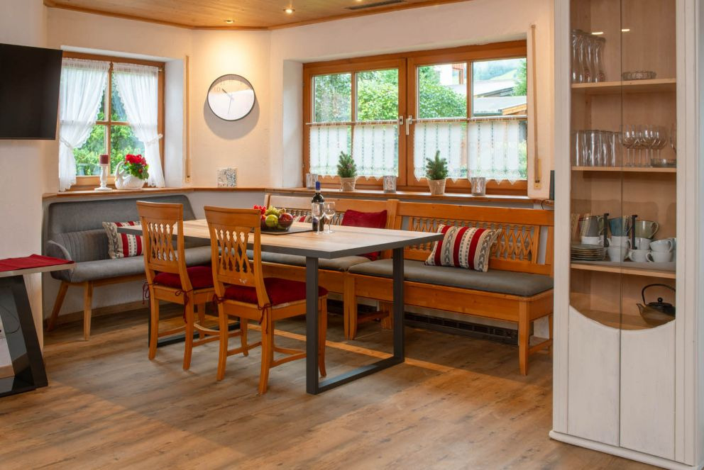 Die 125 qm sonnendurchflutete Räume bieten bis zu 6 Personen bequem Platz z.B. im großen Wohnzimmer mit Kachelofen und Allgäuer Ofenbank, einem großzügigen Essplatz und einer gemütlichen Ledercouch. Die zum Wohnraum hin geöffnete und vollausgestattete Traumküche verfügt über eine Spülmaschine, einen großen Kühlschrank mit 3 Gefrierfächern, Cerankochfeld und Backofen und Mikrowelle, sowie über eine Filter- und Kapselkaffeemaschine. Ein Thermomix kann auf Anfrage kostenlos dazugestellt werden.