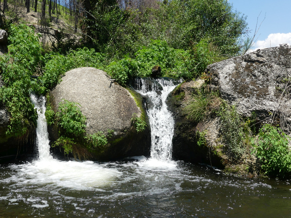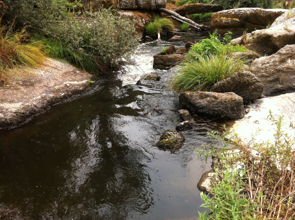 Vor dem Haus liegt die 120 qm große Terrasse, die aus einem riesigen flachen Granitfelsen und großen Granitplatten besteht. Früher wurde dort der Mais gedroschen. Hier können die Gäste frühstücken, sich sonnen, oder den Abend beim Grillen mit einem Glas Rotwein beschließen. Auf Wunsch kann hier auch für die Kinder ein Planschbecken aufgebaut werden.